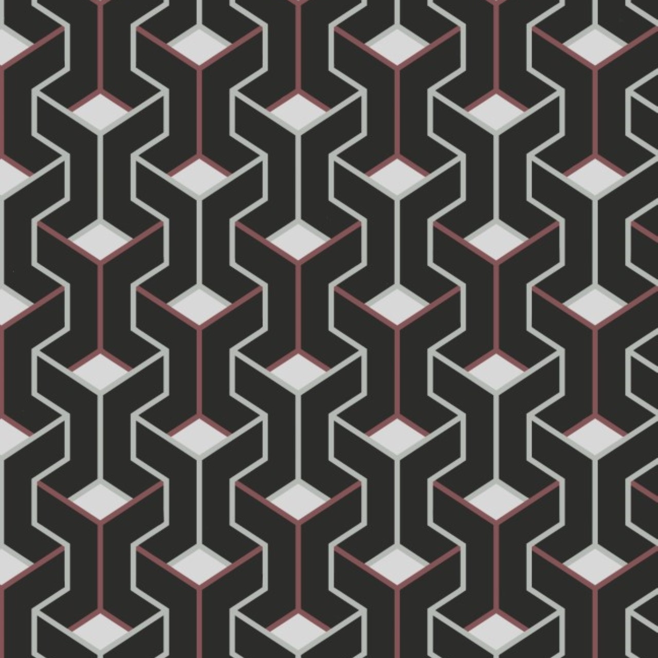Cubes drop into cubes creating a striking repeat. Strong colours enhance this dramatic geometric statement.