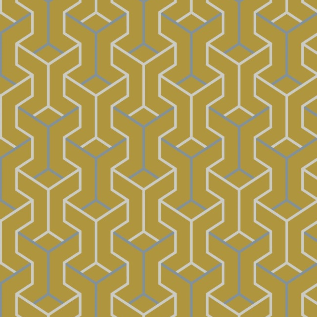 Cubes drop into cubes creating a striking repeat. Strong colours enhance this dramatic geometric statement.