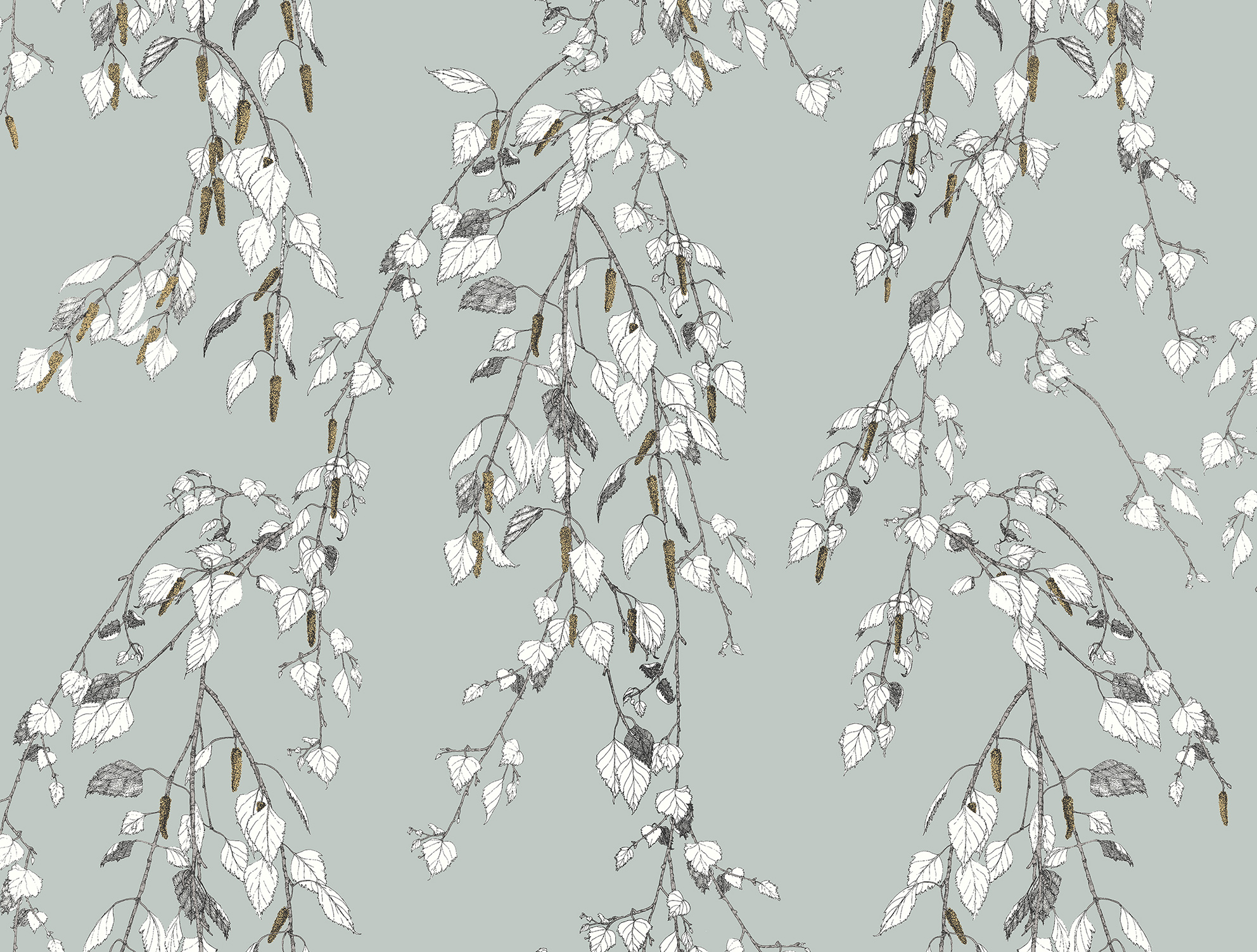 KACHURA - Sitting under a silver birch, its gentle boughs swaying gracefully around you. This wallpaper was created to recreate this feeling exactly. Inspired by the mythical world of Shangri-La; this collection brings to life the lost world by way of floral metaphors that would have adorned the valleys and surrounding peaks of its snowy mountains.