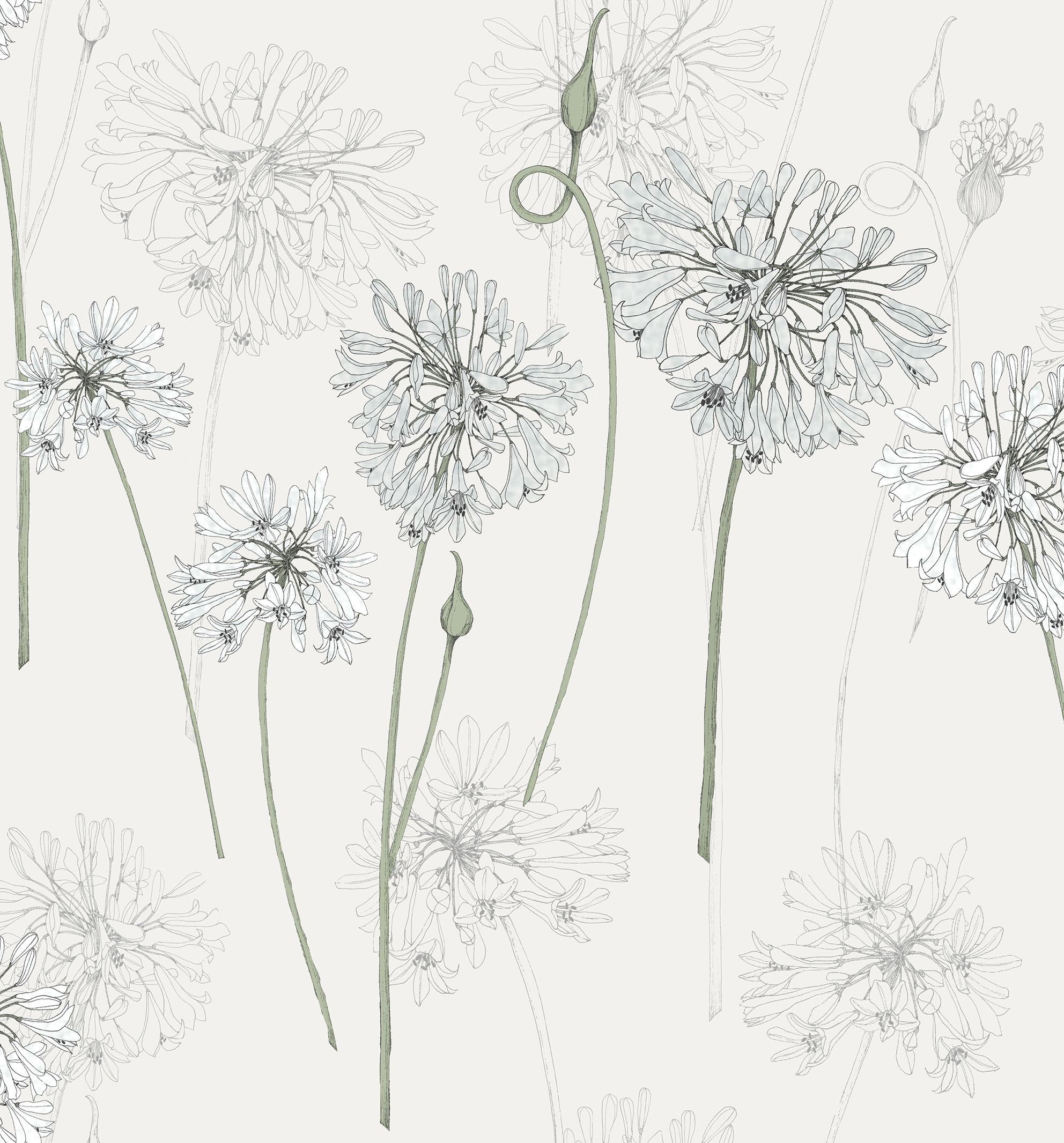 YUNNAN - Big bold Agapanthus flora is all that is required to make this design a stunning addition to the collection, and to any interior wall. Inspired by the mythical world of Shangri-La; this collection brings to life the lost world by way of floral metaphors that would have adorned the valleys and surrounding peaks of its snowy mountains.