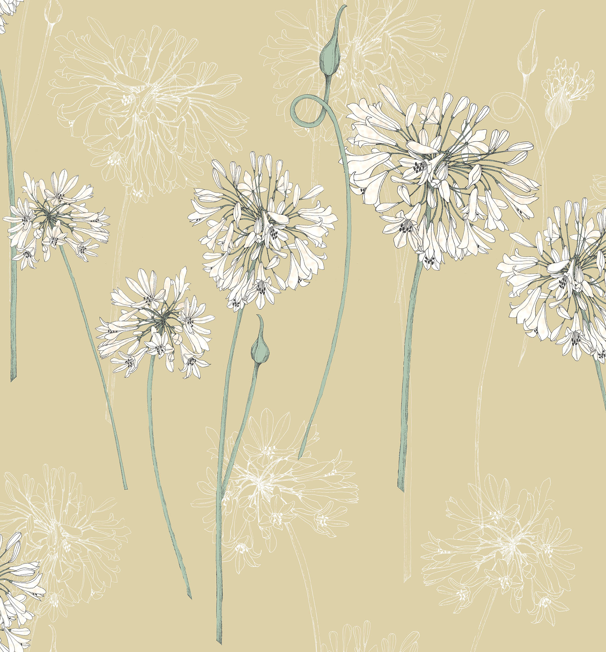 YUNNAN - Big bold Agapanthus flora is all that is required to make this design a stunning addition to the collection, and to any interior wall. Inspired by the mythical world of Shangri-La; this collection brings to life the lost world by way of floral metaphors that would have adorned the valleys and surrounding peaks of its snowy mountains.