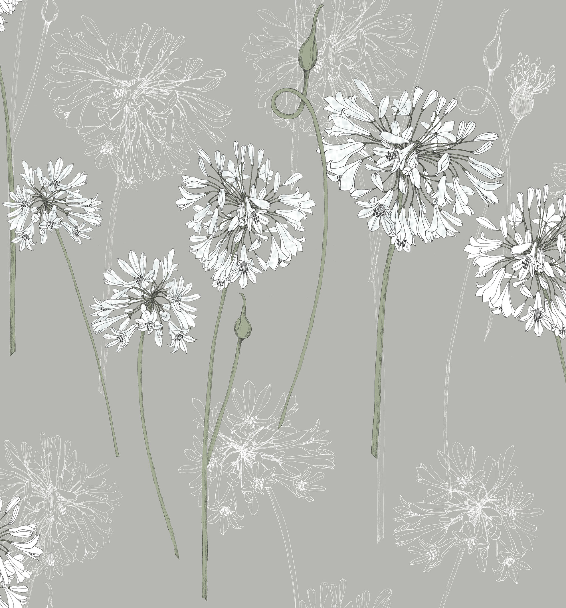 YUNNAN - Big bold Agapanthus flora is all that is required to make this design a stunning addition to the collection, and to any interior wall. Inspired by the mythical world of Shangri-La; this collection brings to life the lost world by way of floral metaphors that would have adorned the valleys and surrounding peaks of its snowy mountains.