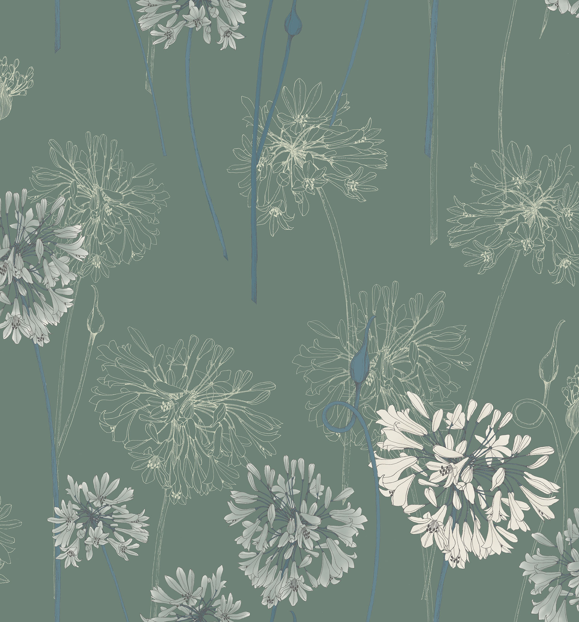 YUNNAN - Big bold Agapanthus flora is all that is required to make this design a stunning addition to the collection, and to any interior wall. Inspired by the mythical world of Shangri-La; this collection brings to life the lost world by way of floral metaphors that would have adorned the valleys and surrounding peaks of its snowy mountains.