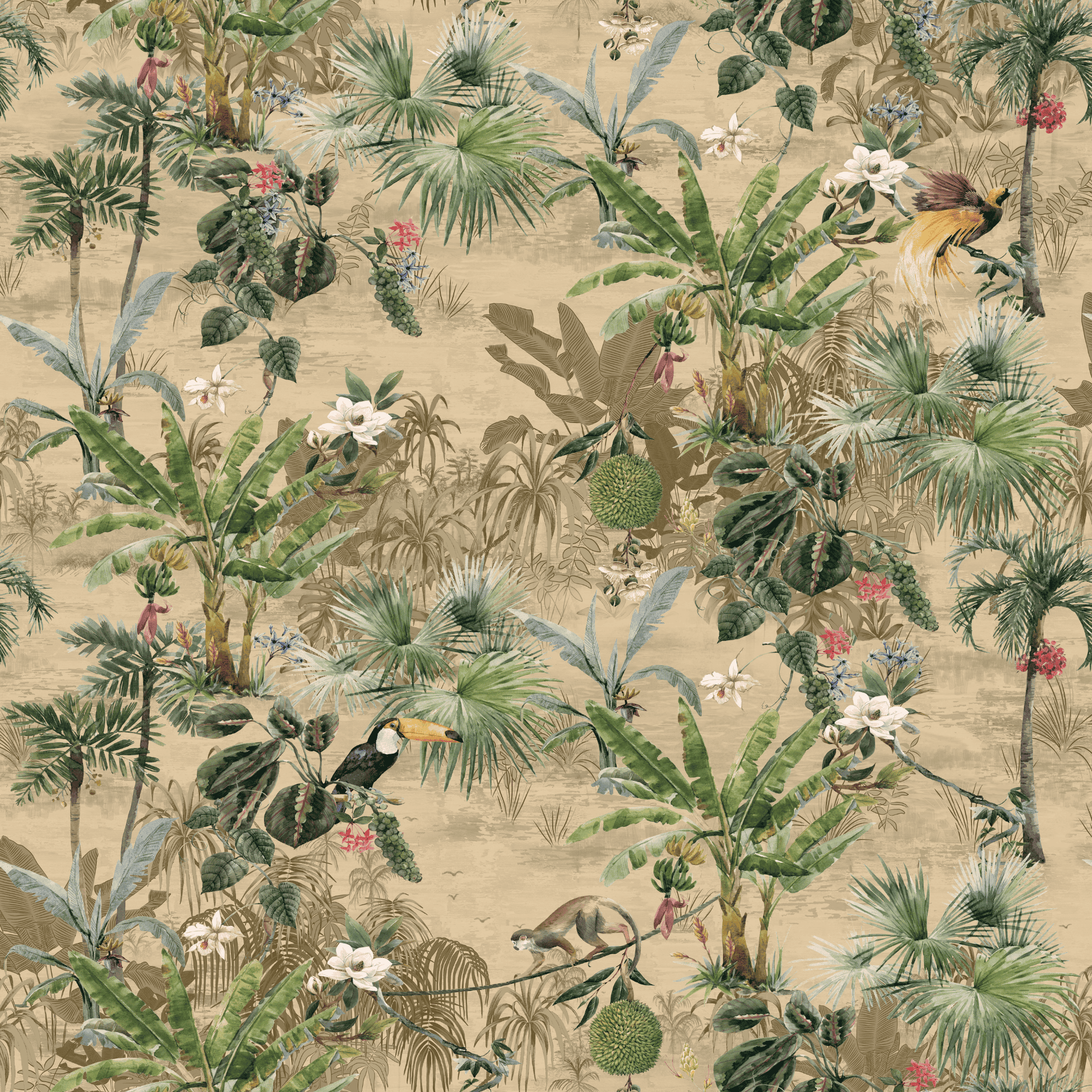 Discover the captivating charm of tropical wildlife and atmospheric jungle scenery with Yucatan, our reimagined wallcovering design. Vintage-inspired elements blend seamlessly with soft tones and layered foliage, creating a sense of depth and perspective. Yucatan is perfect for adding a touch of nature and sophistication to any interior space, bringing the beauty of the tropics indoors.
