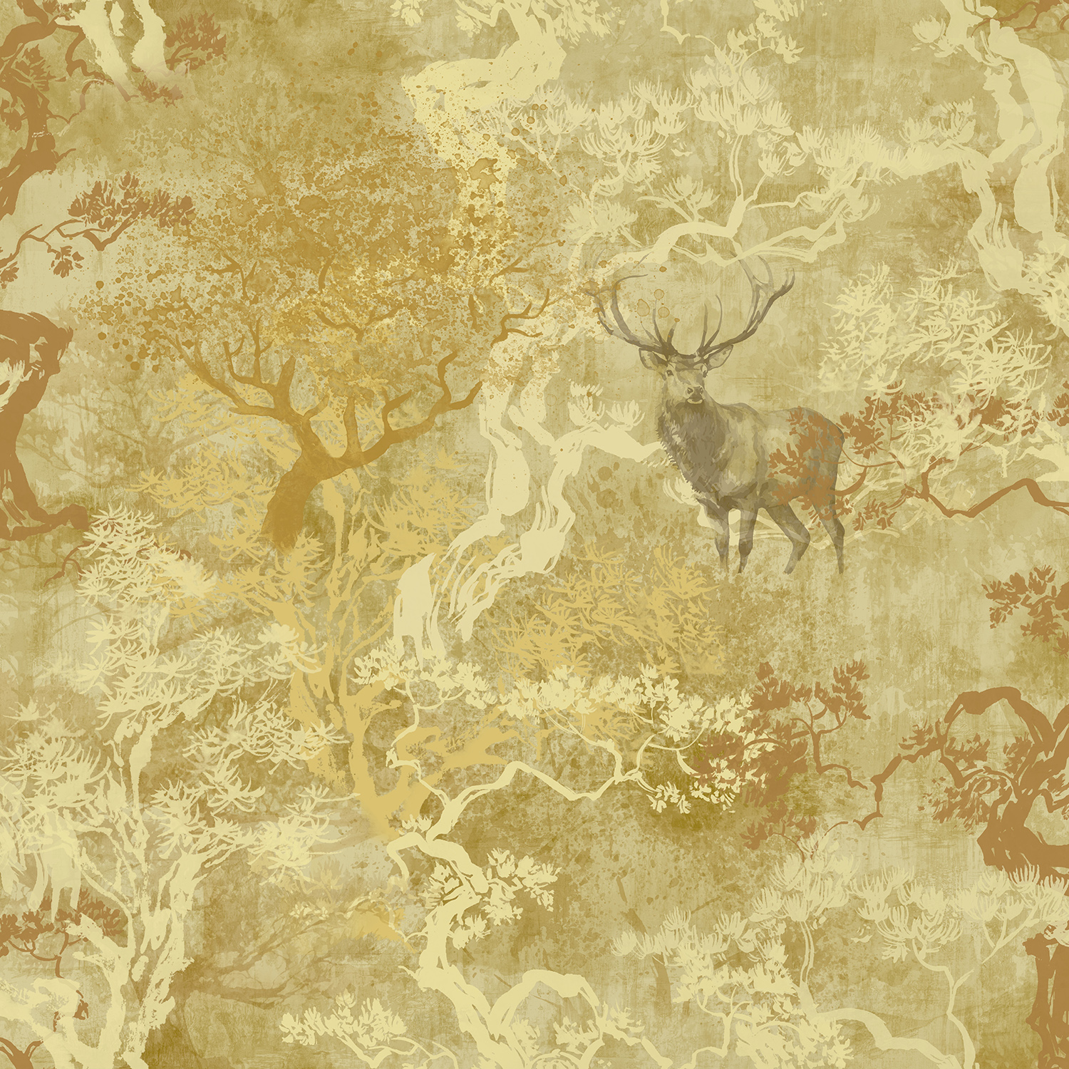 Richmond takes inspiration from peaceful forest landscapes where stags move quietly through tall trees and soft undergrowth. The design captures this natural stillness with layered woodland tones and subtle detailing.
